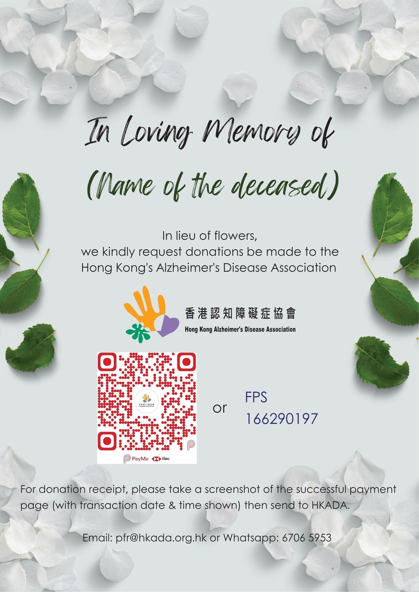 🤍 按個人意願,邀請親友以愛心捐款代替帛金或花牌